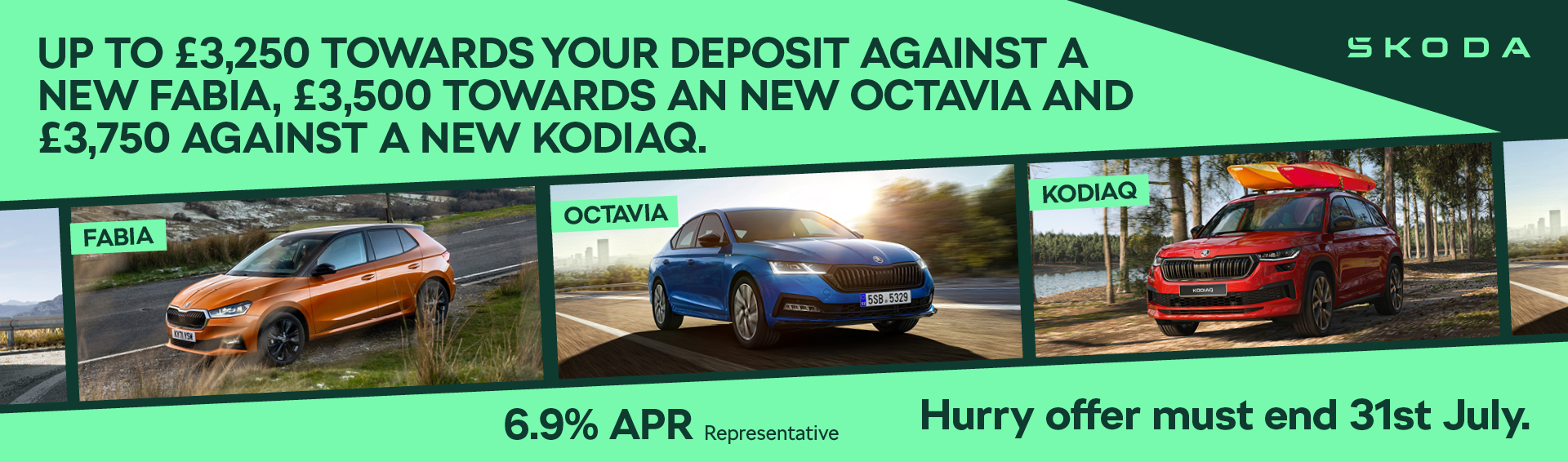 You can get up to £3,250 towards your deposit when you choose the stylish Fabia, a generous £3,500 towards a powerful new Octavia, and an incredible £3,750 towards the versatile new Kodiaq.